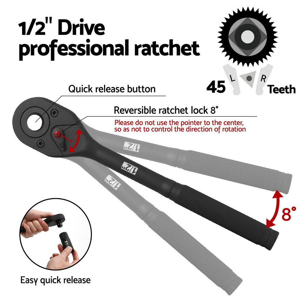 Giantz 30Pc 1/2" Drive Socket Set Cr-V Steel 8-32mm Workshop Repair